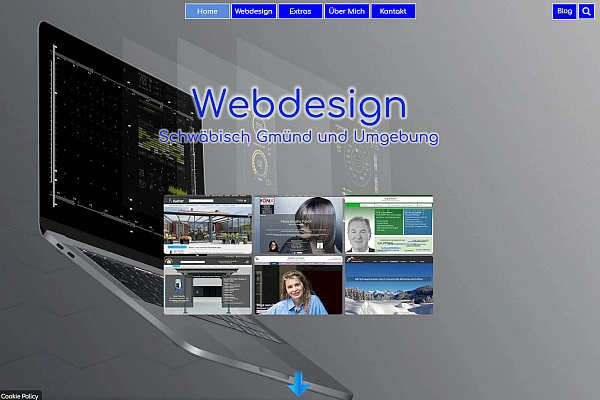 Komplett neu gestaltet wurde die Landingsection meiner Startseite. Hier lädt ein interessanter, optischer Effekt dazu ein, aus sechs ausgesuchten Webprojekt-Referenzen eines anzuklicken (call-to-action). Als Referenzen habe ich folgende Kundenprojekte ausgesucht:
